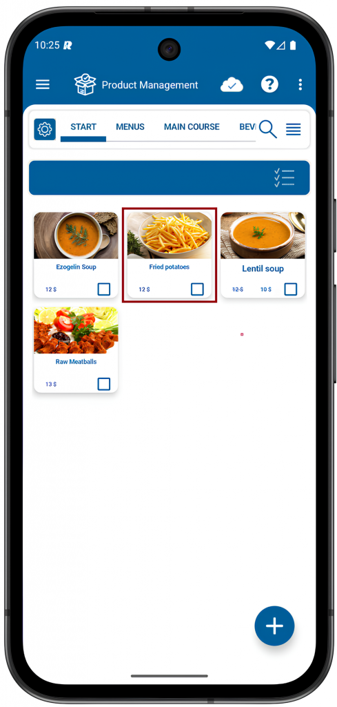 3- From the relevant category, choose the product you want to edit. In this example, we’ll select Fried Potatoes. Next, click on the selected product to access its editing options.