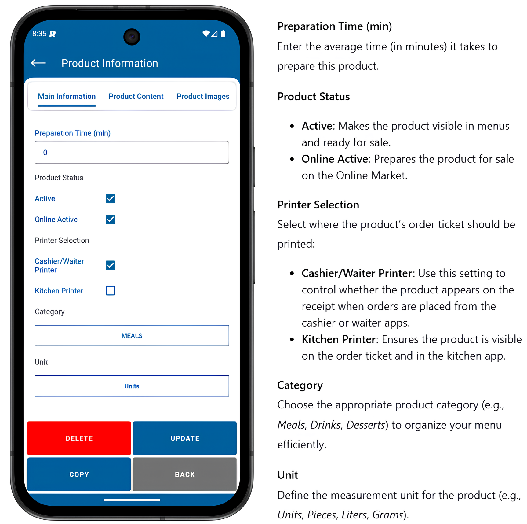 4- Each field on the product edit screen includes a description. Make the necessary changes to the product information and click the UPDATE button to save your changes. The product information editing process has been completed successfully.