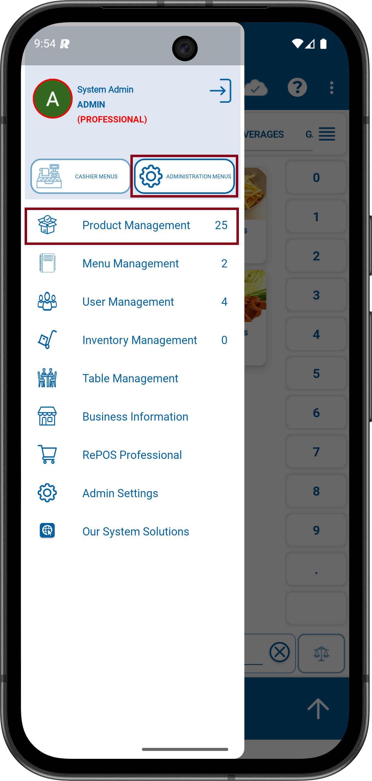 1- Login to the RePOS application as “System Admin” user.