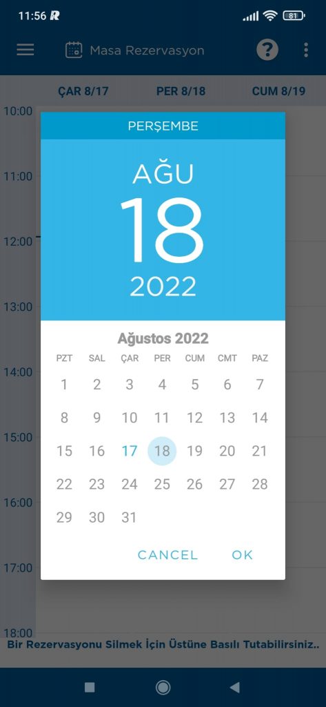 2- Rezervasyon için Takvimden tarih ve saat seçilir.