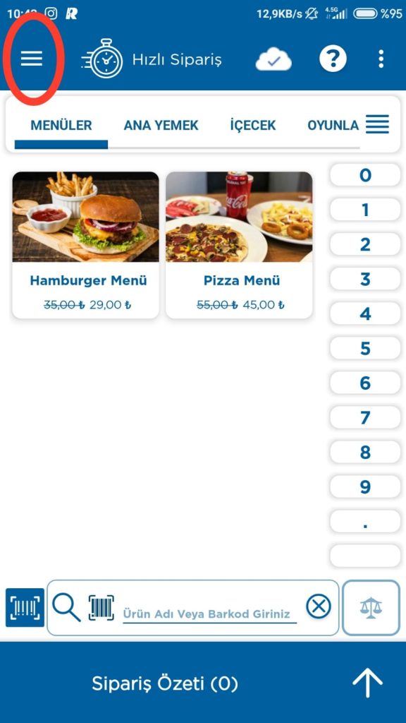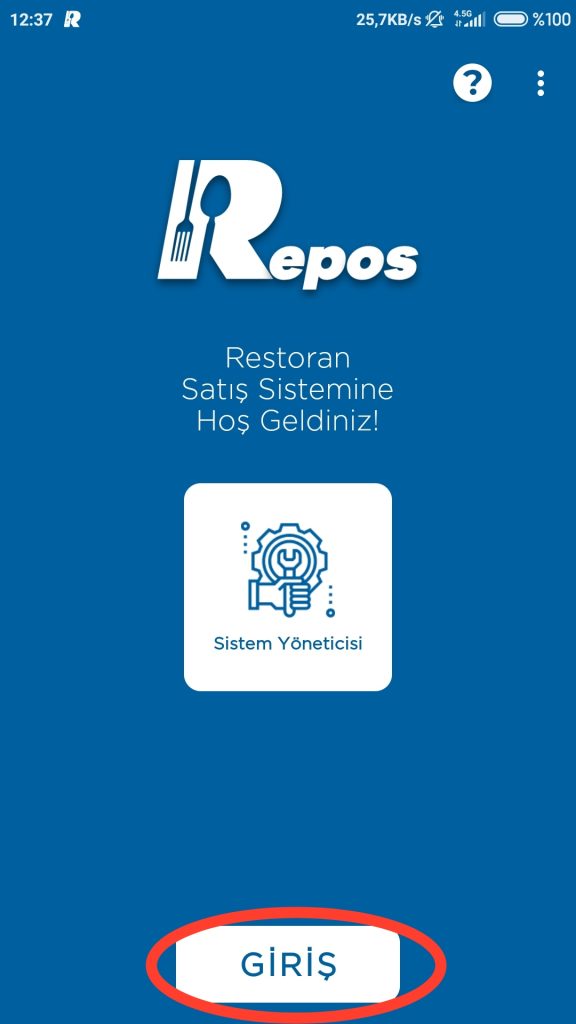 1- RePOS uygulamasına Sistem Yöneticisi olarak giriş yapın. Sol üstteki Hamburger Menü simgesine dokunun.